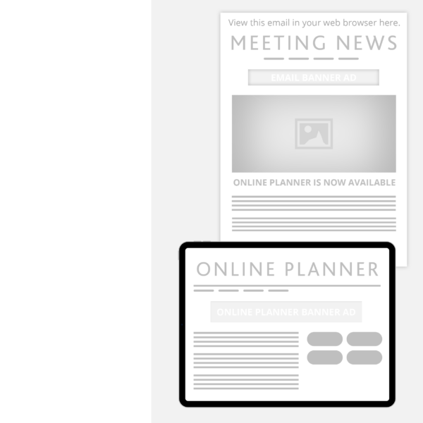 Stay ahead of the competition with early and exclusive exposure for your message in the Online Planner. This opportunity includes a banner ad displayed on key screens of the Online Planner during pre-meeting and prime registration times, as well as a banner ad included in one email distribution that drives users to the Online Planner.